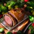 In skillet, add the onions, carrots, celery and minced garlic to the drippings and sauté about 5 minutes. Stir in the minced rosemary, tomato paste, broths and merlot. Drain the port from the cherries & apricots (save the fruit) and add to skillet.